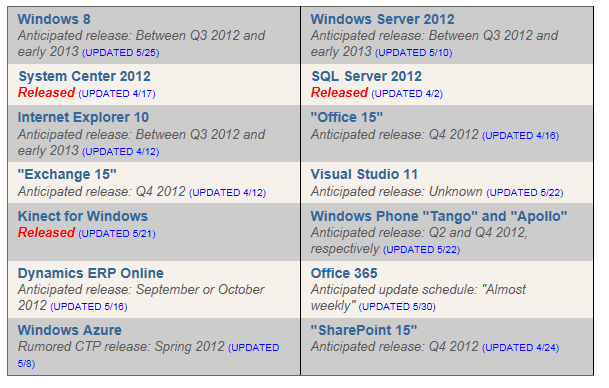 Según Redmond Channel Partner estas son las fechas estimadas de liberación de las siguientes versiones.