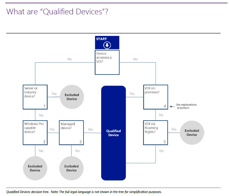 Algunos acuerdos de licenciamiento por volumen de Microsoft (como el Enterprise Agreement) contemplan dentro de su licenciamiento y cobertura la definición de «dispositivos calificados», la cual ha cambiado a través de los años. El último documento de Microsoft tiene un flujograma que simplifica la clasificación del mismo: