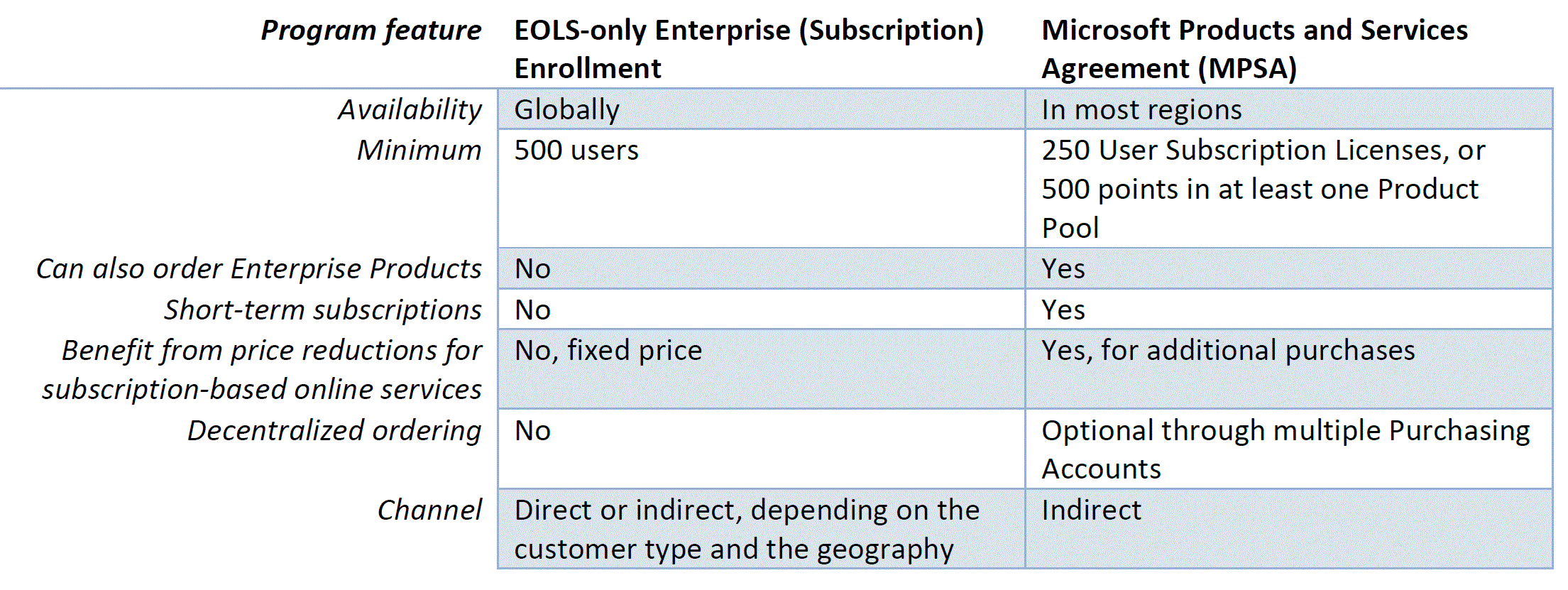 Servicios En-Línea de Microsoft: MPSA vs Enterprise
