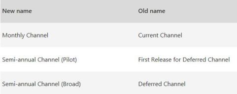 Cambios en los nombre de los canales de actualización (antes se denominaban ramas de servicio):