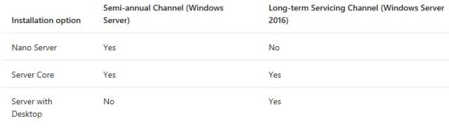 Windows Server tiene varias modalidades de instalación y cada una soportará ciertos canales de servicio: