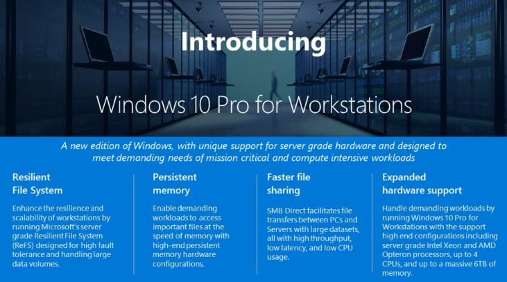 Llega Windows 10 Pro for Workstations