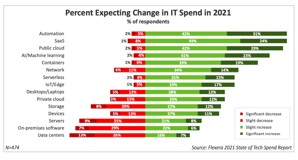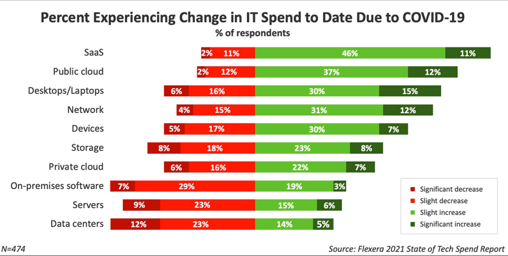 • La pandemia ha aumentado el gasto en nube pública y SaaS para la mitad de las organizaciones.