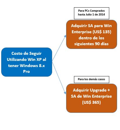 Licenciamiento de Sistema Operativo de Escritorio: Aplica para Windows 8.1 en sus distintas ediciones y también versiones anteriores como Windows 8.0, Windows 7, Windows Vista, Windows XP, etc. Cada dispositivo en donde se instale o visualice el producto requiere una licencia. Es decir, el modelo de licenciamiento es por dispositivo y por lo tanto se habla de dispositivo licenciado y usuario principal del dispositivo licenciado.